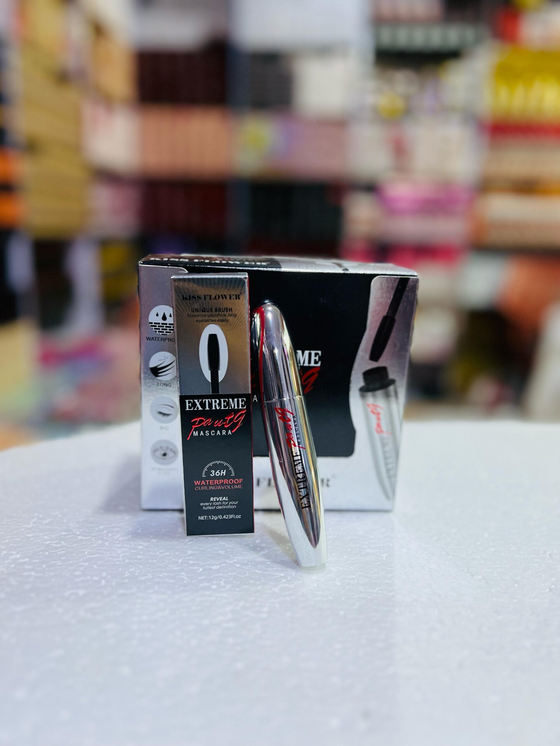 Make a statement at any event with the KISS FLOWER Extreme Party Mascara. Featuring a unique brush designed for maximum impact, this mascara reveals your fullest lash definition for a high-drama, “party-ready” look.